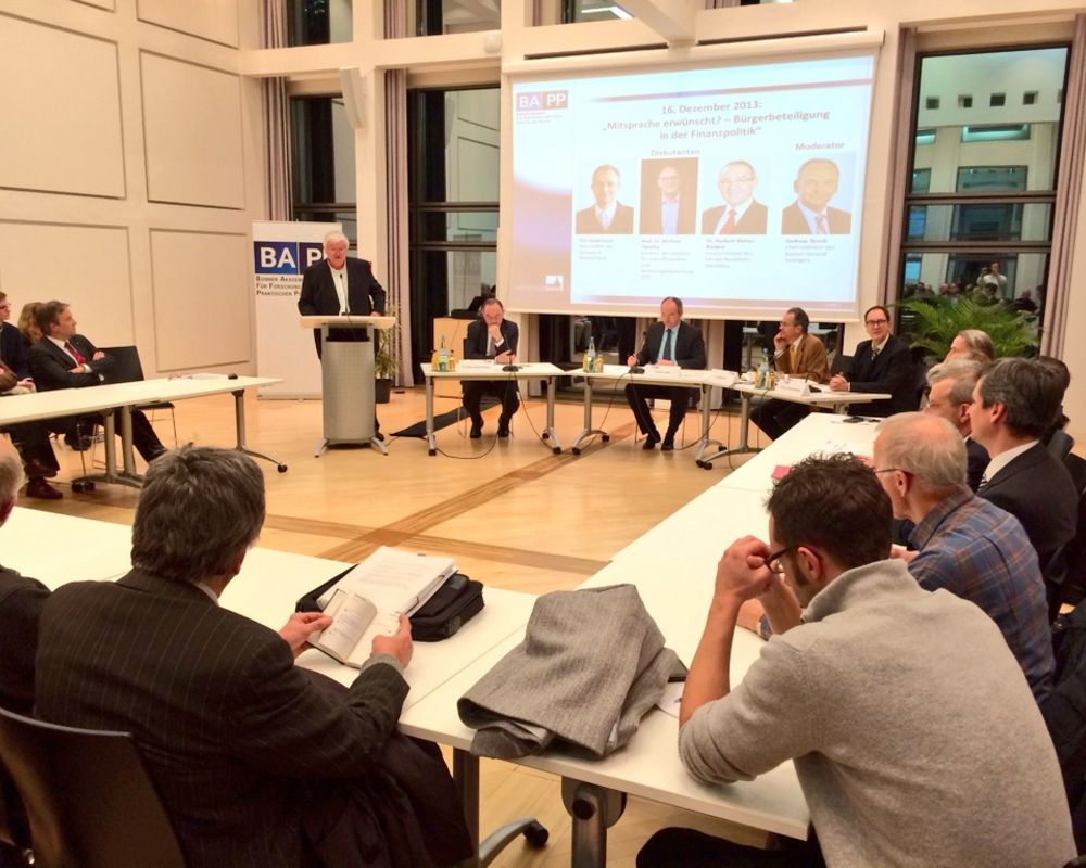 Sollen die Bürger über die Höhe der von ihnen gezahlten Steuern und Abgaben abstimmen dürfen? Um diese Frage ging es bei einer prominent besetzten Podiumsdiskussion am 16. Dezember in Bonn. Eingeladen dazu hatte die Bonner Akademie für Forschung und Lehre praktischer Politik.