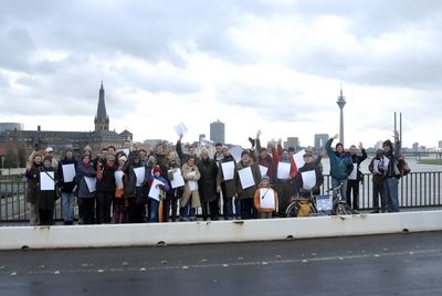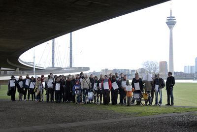 "Wofür seid ihr denn?" - Eine gute Frage angesichts der Gruppe, die sich am Karfreitag mit weißen Umhängeplakaten am vor der Düsseldorfer Kunsthalle geparkten Omnibus für Direkte Demokratie eingefunden hatte.