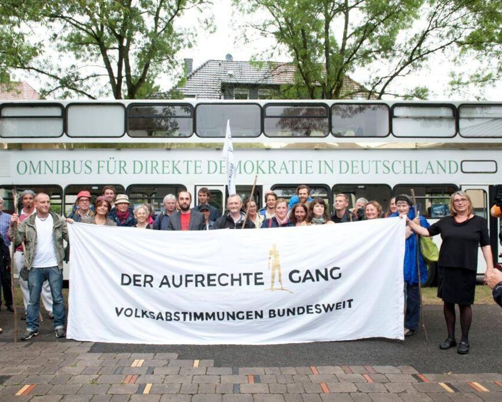 Mit der vom OMNIBUS für direkte Demokratie mit Unterstützung von Mehr Demokratie organisierte Aktion "Der aufrechte Gang - 675 Kilometer für die Volksabstimmung" sind wir rund 40 Tage zu Fuß unterwegs in die Bundeshauptstadt. Nach der Bundestagswahl am 22. September wollen wir zu den Koalitionsverhandlungen in Berlin eintreffen. Hier wollen wir die Verankerung der Einführung bundesweiter Volksabstimmung im Koalitionsvertrag der neuen Bundesregierung einfordern. Dieser Forderung wollen wir auch dadurch Nachdruck verleihen, dass wir 100.000 Unterschriften an die neue Regierung überreichen.