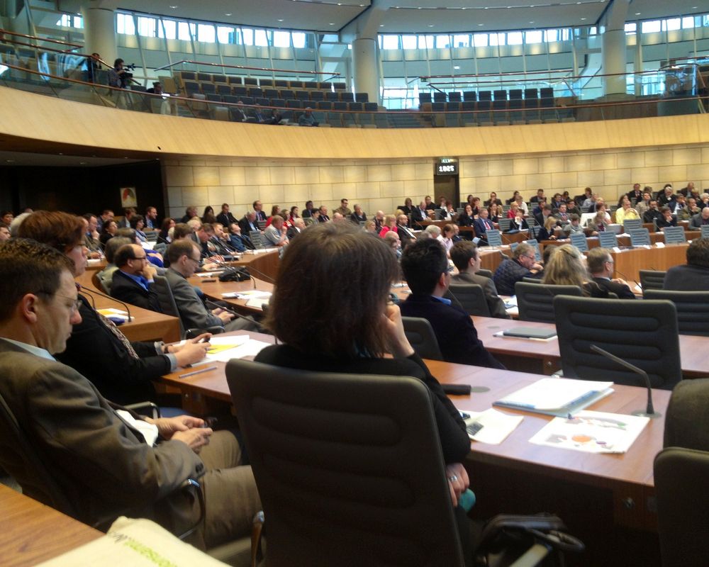 Zur Zukunftskonferenz im Landtag hatten sich zahlreiche Interessierte aus Politik, Verwaltungen und Bürgerinitiativen eingefunden. „Regierungshandeln muss für alle Bürgerinnen und Bürger erlebbarer werden, es muss anfassbarer werden", sagte Ministerpräsidentin Hannelore Kraft in ihrer Auftaktrede. „Bei Open.NRW geht es um nicht weniger als um die Weiterentwicklung der Demokratie. Die repräsentative Demokratie im 21. Jahrhundert kann durchaus ein kleines Update verkraften", so die Regierungschefin. Das Einbeziehen der Bürger verbessere die Qualität politischer Entscheidungen. Online-Dialoge etwa seien ein guter Sensor um festzustellen, welche Anliegen den Menschen wichtig seien.