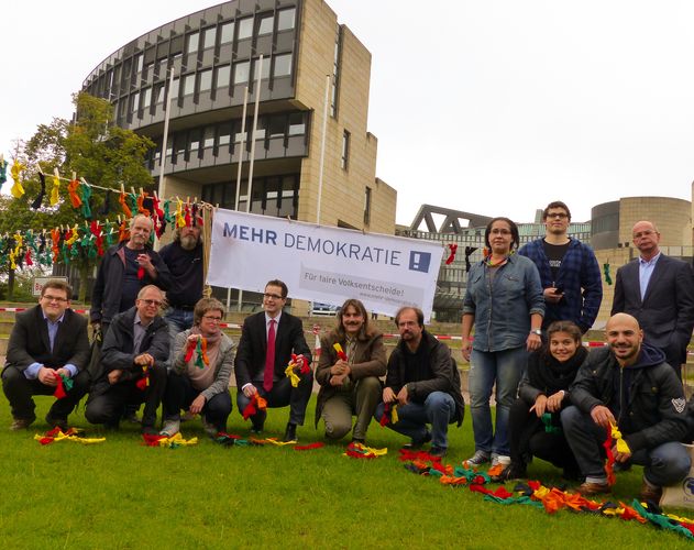 [weiter...]Mit 5.000 geknoteten Taschentüchern an einer langen Leine hat Mehr Demokratie am 1. September vor dem Landtag für die Erleichterung von Volksbegehren in NRW geworben. Die Taschentücher in den Farben der Landtagsfraktionen stehen für die Unterstützer einer vorausgegangenen Online-Unterschriftenaktion…