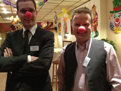 Red Nose Day bei Mehr Demokratie: Geschäftsführer Alexander Slonka und Pressesprecher Thorsten Sterk. Die Nasen bekamen unsere Gäste zusammen mit ihren Namensschildern bei der Begrüßung.