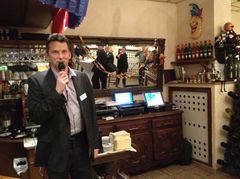 Alexander Slonka, NRW-Geschäftsführer von Mehr Demokratie, begrüßt die Gäste der Demokratieparty und bedankt sich für die bisherige vielfältige Unterstützung.